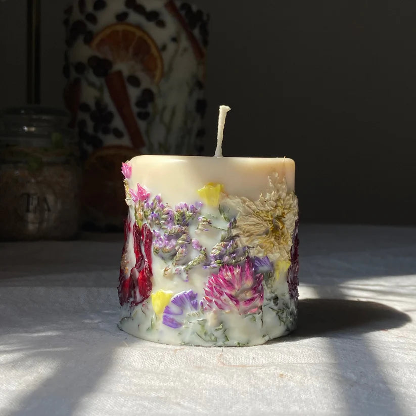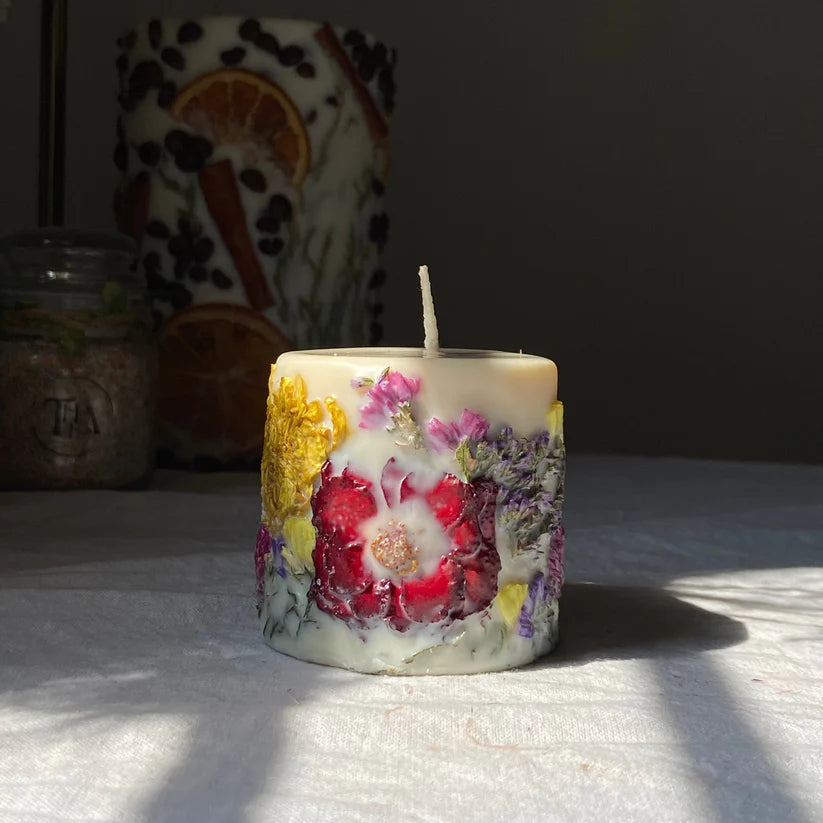 Hand poured 3D botanical candle Made With 100% Soy Wax And Real Dried Flowers.